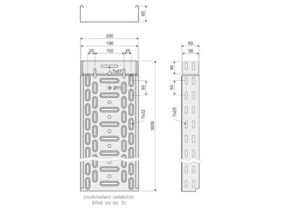 Kabelový žlab s integrovanou spojkou KZI 60x200 z plechu tloušťky 0,75 mm v povrchové úpravě obvodové lakování, děrovaný, opatřený embosy pro zvýšení pevnosti a tuhosti.