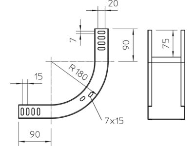 Svislý oblouk 90° ve stoupajícím provedení pro všechny typy kabelových žlabů s výškou bočnice 35 mm.