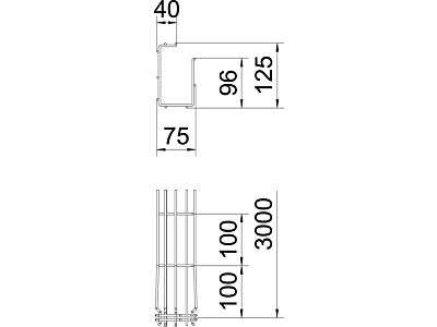 Mřížový žlab ve tvaru G z bodově svařovaného ocelového drátu s různými výškami bočnic a šířkami.
