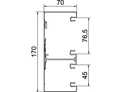 Kanál pro vestavbu přístrojů GS k montáži na stěnu nebo na upevňovací konzoly. Kanál pro vestavbu přístrojů GS je vybaven jazýčky k uchycení přepážky z ocelového plechu, automaticky vytvářejícími kontaktní propojení. Vyrovnání potenciálu mezi jednotlivými spodními díly kanálu se provádí pomocí spojek. Ochranné opatření a vyrovnání potenciálů mezi vrchním a spodním dílem zaručuje patentovaný kryt kanálu, automaticky vytvářející kontaktní propojení. Reálné rozměry systémového otvoru pro instalaci přístrojů činí 76,5 mm. Druhý žlábek kanálu se systémovým otvorem 45 mm slouží k uložení vedení. Není zde možné vestavět spínací přístroje a zásuvky Modul 45. Vrchní díl se musí objednat samostatně.