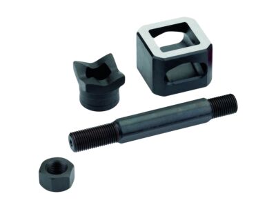 Děrovačka se čtvercovými otvory; patentovaná matrice; s bočním vysunutím odpadního kusu. Vhodné pro: Vhodné pro ocelové plechy (ST 37), plasty a hliník. Ovládání: Hydraulické ovládání. Provedení: S razníkem, Vhodné pro: ocelové plechy (ST 37), plasty a hliník. Ovládání: hydraulické: Vhodné pro: hydraulické. Provedení: S razníkem, matricí, hydraulickým šroubem a pojistnou maticí. Skladování: V praktickém, robustním plastovém kufříku. Jmenovitý rozměr 138,0x138,0 mm, pilotní vrták Ø 30,0* mm, max. tloušťka materiálu 3,0 mm; * Pouze ve spojení s (CIMCO díl č. 13 4022) nebo (adaptér 13 5088).