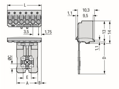 1vodičová pružinová svorkovnice; Tlačítko; Push-in CAGE CLAMP®; 1,5 mm²; Rozteč 3,5 mm; 10pól.; Manipulační destička; 1,50 mm²; Světle šedá