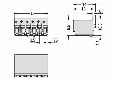 1vodičová pružinová svorkovnice; Tlačítko; Push-in CAGE CLAMP®; 1,5 mm²; Rozteč 3,5 mm; 6pól.; 1,50 mm²; Světle šedá