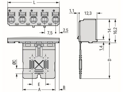 1vodičová pružinová svorkovnice; Tlačítko; Push-in CAGE CLAMP®; 2,5 mm²; Rozteč 7,5 mm; 3pól.; Manipulační destička; 2,50 mm²; Světle šedá
