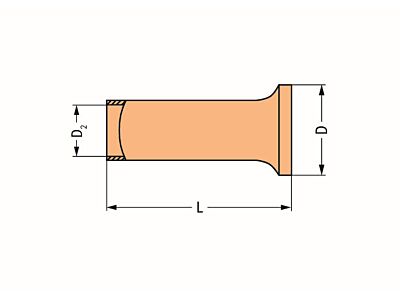 Dutinka; Objímka na 35 mm² / AWG 2; Bez plastového límce; Galvanicky pocínováno; Elektrolytická měď; Plynotěsně osazena; Dle DIN 46228, část 1/08.92; Stříbrná