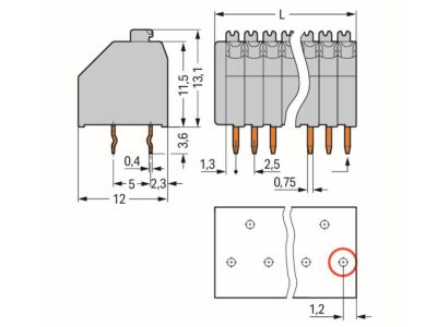 Svorka na desky plošných spojů; Tlačítko; 0,5 mm²; Rozteč 2,5 mm; 20pól.; Push-in CAGE CLAMP®; Šedá