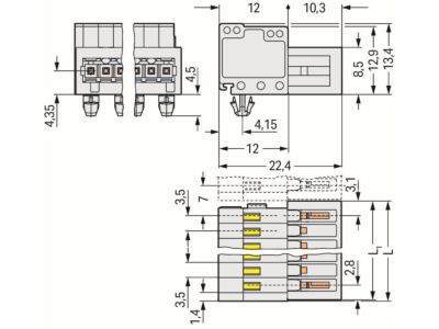 1vodičový konektor s pájecími piny; CAGE CLAMP®; 1,5 mm²; Rozteč 3,5 mm; 10pól.; 100% ochrana proti chybnému zapojení; Montáž na lištu DIN 35 / do panelu; Západky; 1,50 mm²; Světle šedá
