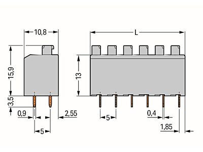 WAGO Svorka 735-307 na desky plošných spojů Tlačítko 1,5 mm², šedá