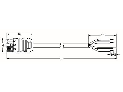 Konfekcionovaný s připojovacím kabelem; Eca; Zdířka / otevřený konec; 4pól.; Kód. A; H05Z1Z1-F 4G 1,5 mm²; 1 m; 1,50 mm²; Černá
