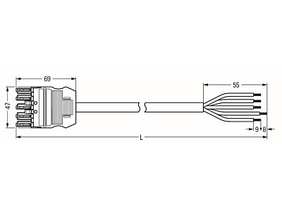 Konfekcionovaný s připojovacím kabelem; Eca; Zdířka / otevřený konec; 5pól.; Kód. A; H05VV-F 5G 1,5 mm²; 2 m; 1,50 mm²; Černá