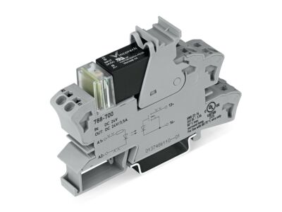 Polovodičové relé SSR; Jmenovité vstupní napětí: 24 V DC; Rozsah výstupního napětí DC 0–24 V; Mezní trvalý proud 3,5 A; 2vodičové připojení; Indikace stavu červená; Konstrukční šířka 15 mm; Šedá