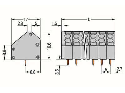 2vodičová svorka na desky plošných spojů; 1,5 mm²; Rozteč 5 mm; 7pól.; Push-in CAGE CLAMP®; Šedá