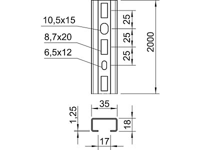 Střední profilová lišta C k ukládání kabelů, ve spojení s třmenovými příchytkami s patkou s hlavou T. Lze použít také jako konstrukci k zavěšení kabelových nosných systémů.