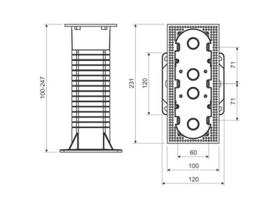 KEZ-3 - KRABICE EL.VÍCEN. DO ZAT., konfigurace KB, barva SVĚTLE ŠEDÁ, balení - 1 ks - pro montáž přístrojů ve sdružených rámečcích v zateplených fasádách budov, pro instalaci v zateplovací vrstvě 100-250 mm, pro dva nebo tři přístroje, přepážka pro oddělení více obvodů, součástí balení jsou kvalitní hmoždicky a vrutz pro instalaci, eliminuje vytváření tepelných mostů, robustní konstrukce