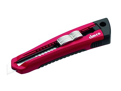Univerzální nůž z tlakového zinkového odlitku, vodítko nože z nerezové oceli, tlačný nůž s blokovacím systémem a gumovou vložkou, délka nože 18 mm, celková délka 170 mm.