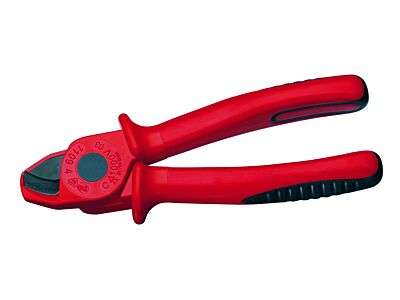 Nůžky na kabely 1 000 V z nárazuvzdorného plastu vyztuženého skelnými vlákny s dvousložkovou rukojetí, řezné destičky ze speciální oceli, pro ohebné hliníkové a měděné vodiče do ø 15 mm, velmi dobrý řezný výkon, robustní provedení, možnost použití při teplotách do -40 °C. Rozměry: 170 mm