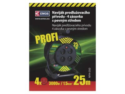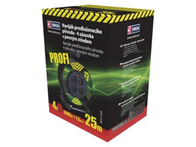 EMOS Přívod prodlužovací 25m zásuvky 4x230V/16A s bubnem IP20 černá (H05VVF3G 3x1,5)