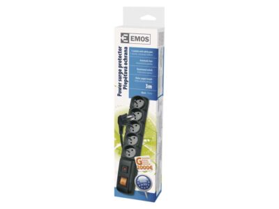 EMOS Přívod prodlužovací 3m 5zásuvka 250V/10A s vypínačem přepěťová ochrana IP20 černá