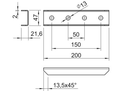 Z vnějšku přesahující spojka se čtyřmi otvory pro podélné spojení profilových lišt 41 × 41 mm a 41 × 21 mm