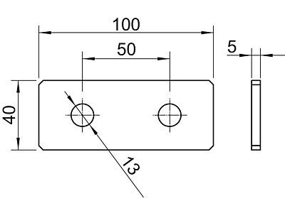 Spojovací deska se dvěma otvory pro podélné spojení profilových lišt 41 × 41 mm a 41 × 21 mm.