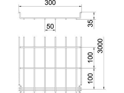 Mřížový žlab s tvarovanou spojkou a výškou bočnice 35 mm.