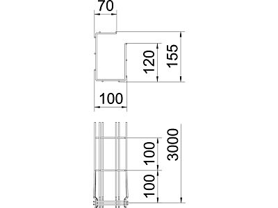 Mřížový žlab ve tvaru G z bodově svařovaného ocelového drátu s různými výškami bočnic a šířkami.