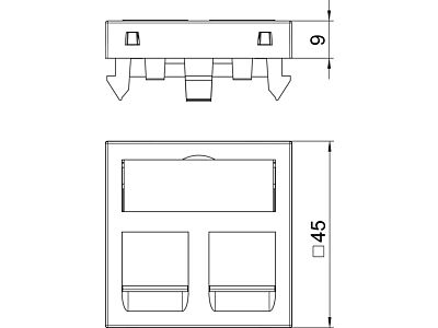 Nosič datové techniky s rovným vývodem a uzavírací krytkou k uchycení dvou modulárních zásuvek datové techniky v provedení RJ45. Upevnění naklapnutím je vhodné pro vodorovnou i svislou montáž do systémového prostředí. Typ A má montážní otvor o rozměrech 20,10 × 14,80 mm a je dimenzován pro přímé upevnění datových modulárních zásuvek v montážním otvoru.