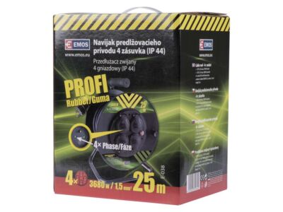 EMOS Přívod prodlužovací 25m zásuvky 4x230V/16A na bubnu IP44 černá (H05RRF3G 3x1,5)
