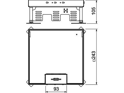 Nivelizovatelná kazeta jmenovité velikosti 9 se šňůrovým vývodem k vestavbě instalačních přístrojů v podlahách se suchou údržbou v interiéru.