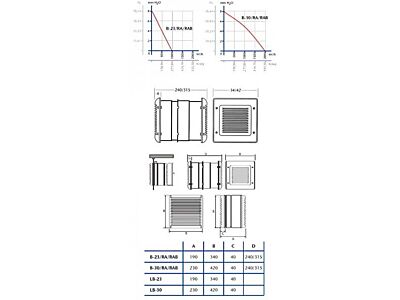 Ventilační jednotka na zeď či do okna, pr. 230 mm, 825 m³/h (odtah) / 530 m³/h (sání), 49 dB(A), IPX4, 5 rychlostní reg. v ceně, reverzace, elektricky ovládaná žaluzie
