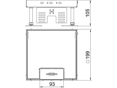 Nivelizovatelná kazeta jmenovité velikosti 4 se šňůrovým vývodem k vestavbě instalačních přístrojů v podlahách se suchou údržbou v interiéru.