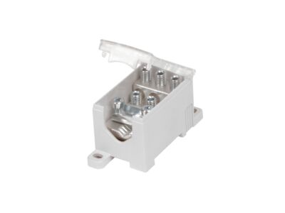 Blok pro rozdělení fází PVB 160-6, 1pólový, pro AL/CU vodiče, jmenovitý proud 160A, jmenovité napětí 690V, barva šedá, montáž na DIN lištu / PANEL, krytí IP20, vstup 1x95mm2, výstup 6x35mm2.