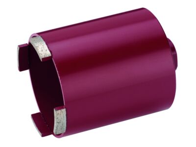 Diamantové jádrové vrtáky Soft L s pracovní délkou 90 mm, s laserem vybroušenými diamantovými segmenty z diamantové drti; vhodné pro: Dutinové bloky, zdicí bloky, cihly (měkké), vápenopískové cihly (měkké brusivo/tvrdé), omítky a pórobeton. Provedení: výška 8 mm; délka segmentu: 24 mm; množství: 4; Ø: 82 mm.