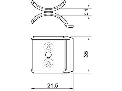 Dvojitá opěrka z kovu jako vložka mezi dvěma nebo třemi kabely uvnitř třmenové příchytky.