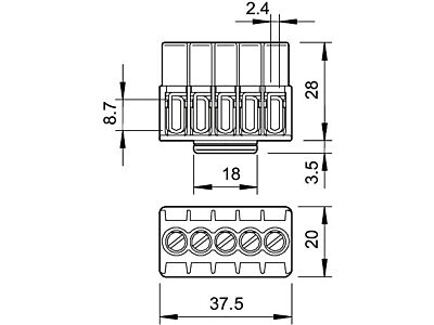 Těla svorek a šrouby z oceli, galvanicky zinkované a transparentně pasivované, jmenovitý průřez 1 ÷ 4 mm², jmenovité napětí 400 V, 5pól., se zdířkovými svorkami. Ke svorkovému místu lze připojit vodiče max. 4× 2,5 mm², 5× 1,5 mm² nebo 6× 1 mm².