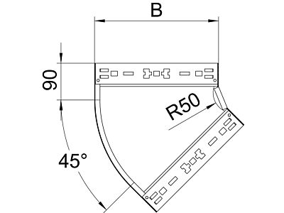 Oblouk 45° se systémem rychlospojek. Pro všechny typy kabelových žlabů s výškou bočnice 60 mm.