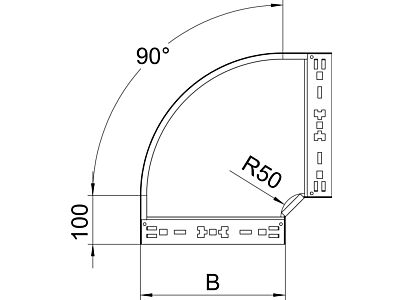 Oblouk 90° se systémem rychlospojek. Pro všechny typy kabelových žlabů s výškou bočnice 85 mm.