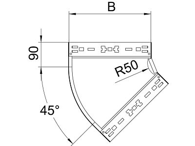 Oblouk 45° se systémem rychlospojek. Pro všechny typy kabelových žlabů s výškou bočnice 110 mm.