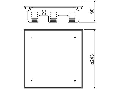Nivelizovatelná, od podlahy oddělitelná "slepá" kazeta pro vytvoření revizního otvoru jmenovité velikosti 9 v suchých nebo mokrých podlahách v interiéru, pro instalaci do podlahových krabic UZD250 nebo UZD350, každá ve spojení s montážním víkem DUG../9 nebo do krabic UGD250-3/9 nebo UGD350-3/9. Montáž se provádí pomocí nivelačních úhelníků (objednávejte zvlášť) v hliníkovém rámovém profilu podlahových krabic. Vhodná jen pro hladké podlahové krytiny.