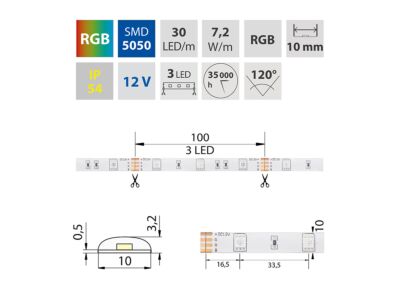MCLED Pásek LED SMD5050 RGB, 30LED/m, 7,2W/m, DC12V, 248lm/m, IP54, 10mm, 5m