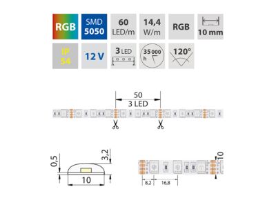 LED pásek SMD5050 RGB, DC 12 V, IP54, 10 mm, bílý PCB pásek, 60LED/m