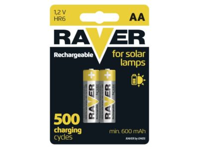 Nabíjecí baterie RAVER SOLAR jsou navrženy pro použití v zahradních solárních svítidlech.Výměnou staré baterie ve svítidle, dosáhnete obnovení plné funkčnosti svítidla. Specifikace baterií Raver Solar plně kopíruje nároky těchto svítidel zejména z hlediska celkové výdrže. Svou kapacitou totiž zaručují max. dobu svitu svítidla, jsou uzpůsobeny každodennímu cyklu nabíjení a 500 nabíjecích cyklů zaručuje dostatečnou životnost těchto baterií.