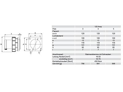 PCE Přívodka 125A/400V 4-pól. IP67 vestavná