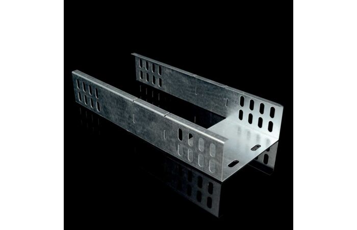 Kabelový žlab s integrovanou spojkou NKZI 100x125 z plechu tloušťky 0,70 mm v povrchové úpravě sendzimir, děrovaný, opatřený embosy pro zvýšení pevnosti a tuhosti.