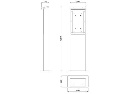 Pilíř je konstruován pro montáž zásuvkové rozvodnice BLOCK 4, o rozměrech skříně 415x212x111mm. Pro variabilitu dodáváno bez zásuvkové rozvodnice. Obrázek má pouze ilustrativní charakter.
