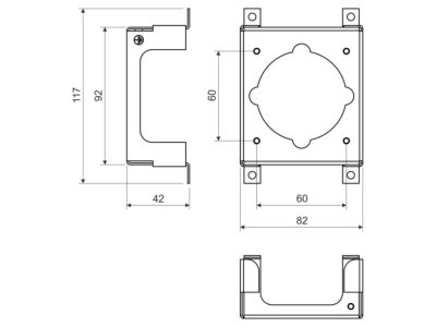 Přístrojový nosič PN KUZ S pro unicerzální krabici KUZ, kovový, povrchová úprava sendzimir, pro třífázovou zásuvku