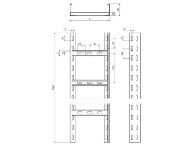Kabelová lávka požárně odolná o rozměru 60x400 mm, povrchová úprava žárový zinek, rozteč příček 300 mm, pro fixaci kabelů v lávce je možné použít příchytek typu PKC