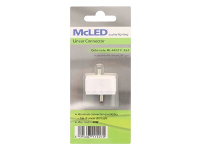 Lineární konektor k McLED LED lineárnímu svítidlu. Slouží k propojení lineárních svítidel. Rozměry: 33 x 42 x 9,5 mm.