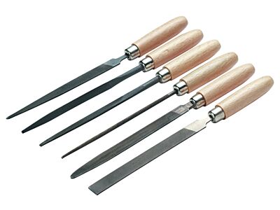 Sada klíčových pilníků, 6 kusů - s dřevěnou rukojetí, podle DIN 7283, tvar A až F, délka 100 mm. Provedení: v plastovém sáčku