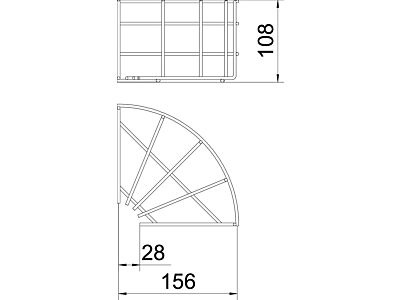 Oblouk 90°, horizontální, pro mřížové žlaby s výškou bočnice 105 mm.